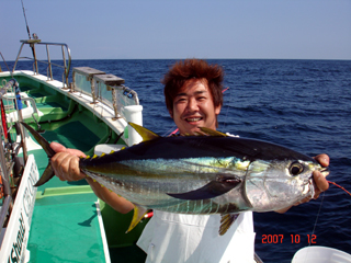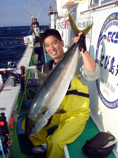 10/12銭洲 大田区 天野五黄氏 キハダ8.15kg GET! 何でも釣ります! 次回も頑張りますよ! 岡野さん!