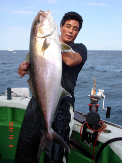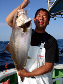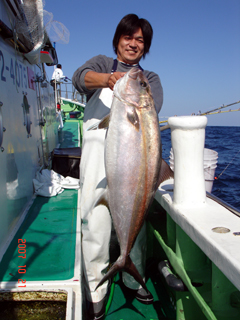 10/14銭洲 伊東大輔氏 カンパチ3.7kg 気合が入ってますよ!Mr,Nagasuさん!