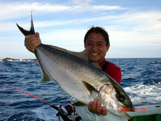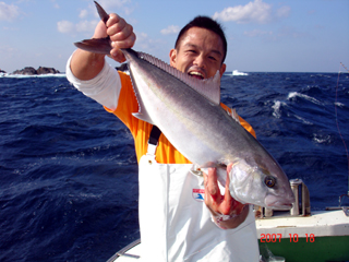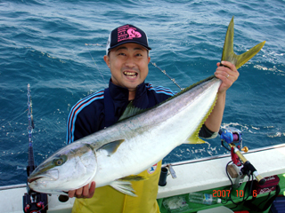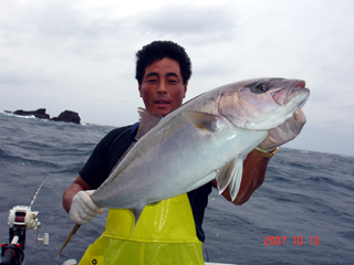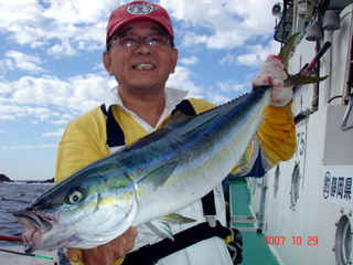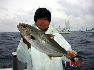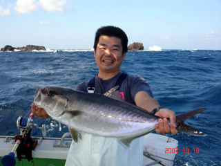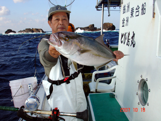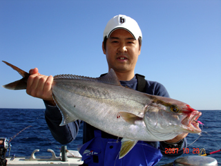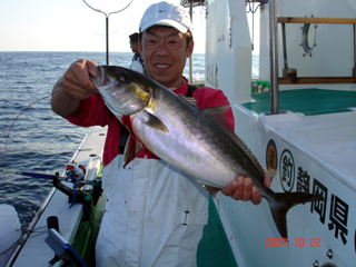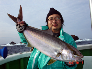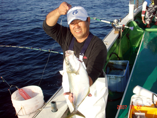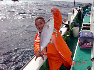 10/21銭洲 伊東大輔氏 カンパチ連続ヒット!で御満悦 ( 一一)( 一一)( 一一)