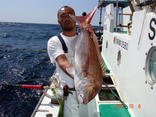 10/06銭洲 国嶋 満副船長 マダイ5.05kg これもムロの泳がせでGET!