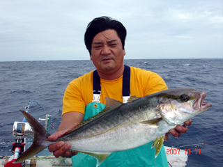 10/11銭洲 ノリノリの井村氏! カンパチGET! 気合の竿頭GET! おめでとう!