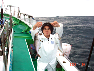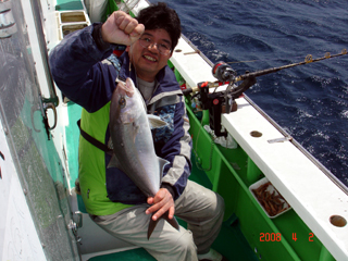 4/04銭洲 とび島丸見習い 菅谷くん! なんと!カンパチもGET\(◎o◎)/!