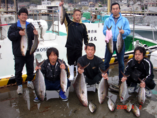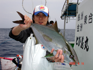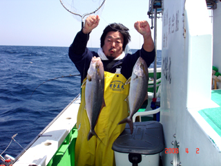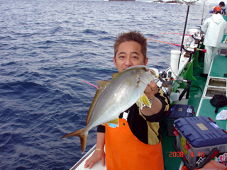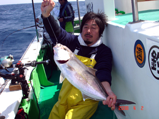 4/02銭洲 ウイリーで頑張りました! 石綿氏 カンパチ1.1-2.1kg4本!