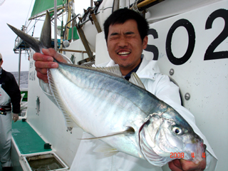 4/04銭洲 とび島丸見習い 菅谷くん! 初のシマアジ2.4kgに感動(>_<) 皆さん今後とも宜しくお願いします