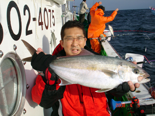 4/02銭洲 東京とび島会 金本俊哉氏 カンパチ8.35kg 千葉ヤリイカ→銭洲カンパチ チャレンジャーです!
