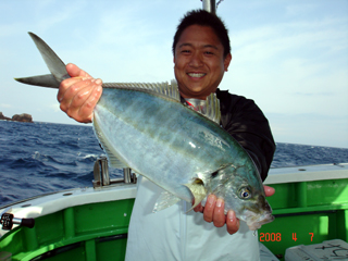 4/07銭洲 初!銭洲!初!とび島丸☆ 名古屋市 徳山裕樹氏 シマアジ1.95kgGET!