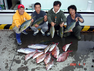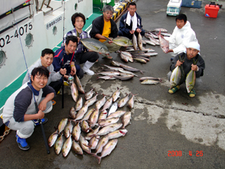 4/07銭洲 チームKING 伊藤氏、林氏、長谷川氏、徳山氏 シマアジ6枚、マダイ8枚、カンパチ2本 ニュル2本!おめでとう!ヒューヒュー(^◇^)