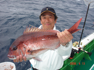 4/04銭洲 田園調布 鈴木榮一氏 マダイ3.15kg カンパチ4本! 出だし好調!