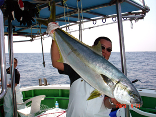 4/05銭洲 下条氏 立て続けにカンパチヒット! 思わず(^v^)