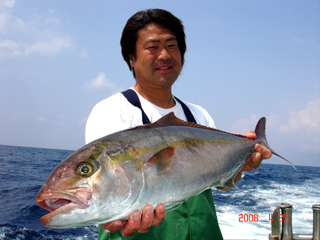 4/07銭洲 初!銭洲!初!とび島丸☆ 春日井市 林 康広氏 シマアジ 2.3kg カンパチ(ーー;) なんとダブル!