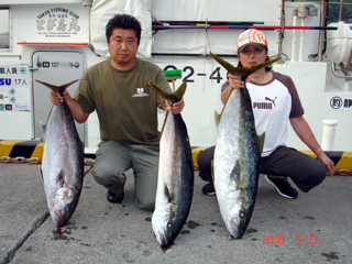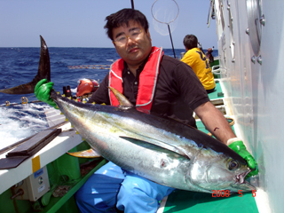 5/05イナンバ 埼玉県 中澤 勉氏 キハダ24.5kg23.25kg 朝一から連続ヒットでイケイケでした。