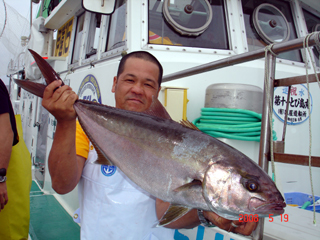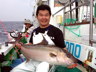 5/16銭洲 東京とび島会 金本俊哉氏 カンパチ19.0kg(帰港後陸上検量) まだまだ頑張ります!銀ちゃん!待ってるよ!!