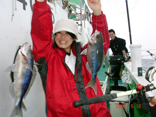 5/18銭洲 初!とび島丸☆ 初!銭洲! 甲府市 岡部紗希さんアオダイ連発! 高級五目釣りで頑張ってくれました! 次回は泳がせにチャレンジしてください!