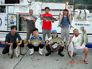 5/21銭洲 名古屋FishingKING VIP仕立 ムロカンパチ3人で3.05-9.5kg1-3計6本 五目カンパチ1.25-2.1kg2本 ブリ7.7kg1本 マダイ1.3kg カンパチBARIBARI!気合の入った釣りでした!