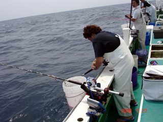 5/05銭洲 東京とび島会 塩見一之氏 余裕のカンパチファイト(-。-)y-゜゜゜