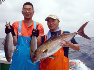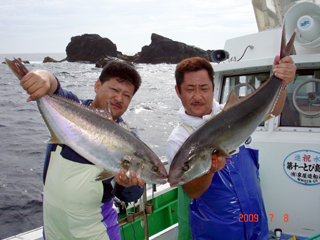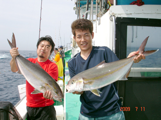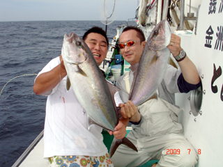 7/09 銭洲 三繩氏&神村氏 カンパチ4.7kg&ブリ9.1kg