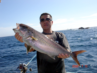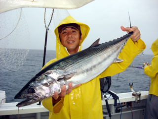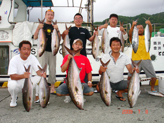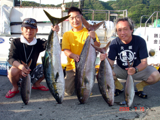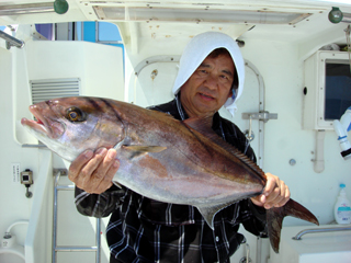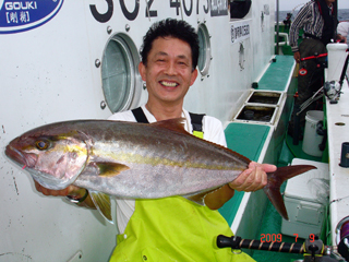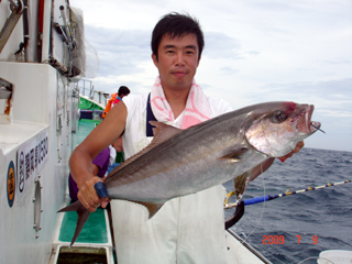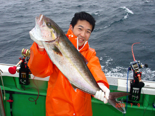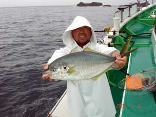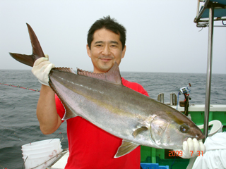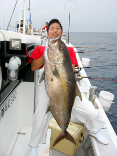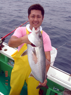 7/08 銭洲 葉山釣具 水留店長 カンパチ12.4kg ワラサ3.7kg ハガツオ4.2kg