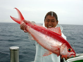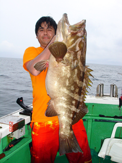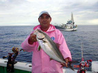 7/04 銭洲 初!銭洲!初!とび島丸☆ 山本氏 カンパチ5.4kg頭に2本GET! やります!楽勝っす(-。-)y-゜゜゜