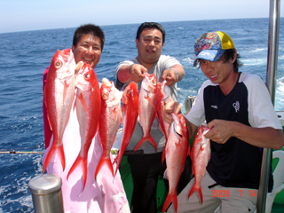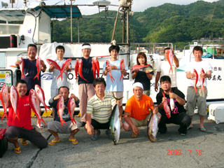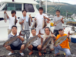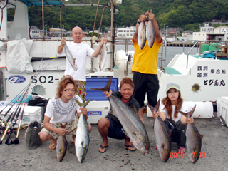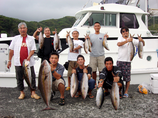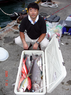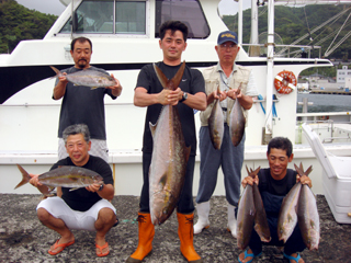 7/04 銭洲 カンパチ1.6-5.75kg9本 ヒラマサ10.65kg メジロ(ワラサ)3.8-7.05kg5本 マダイ4.7kg メダイ7kg