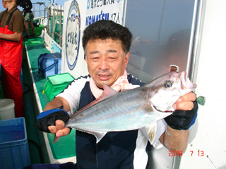 7/07 銭洲 コマセ禁止です! イカ&切身使用 東久留米市 辻本一雄氏 オナガ2.3kg 頑張りました!