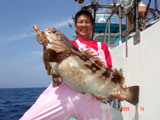 7/09 銭洲 渋谷区 神村大輔氏 カンパチ4.05kg Mr,Nagasuさん!チャンスは続きます!