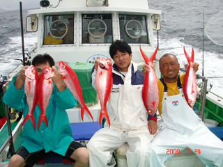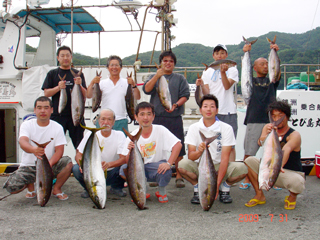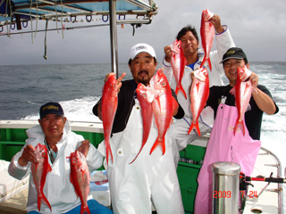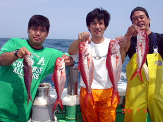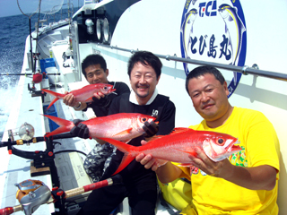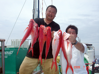 7/08 銭洲 初!とび島丸☆ 仲手川功氏&北林雄司氏 こちらも決めてます!カンパチ(^o^)Vサイン!