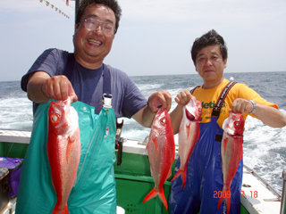7/04 銭洲 米山氏&山本氏 カンパチ釣ってルン♪ルン♪です(^o^)丿
