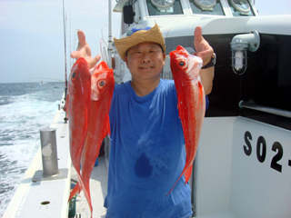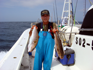 7/05 銭洲 岡田氏 カンパチ4.8-5.55kg2本! 吉田さん!ファイトでいこうよ!