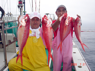 7/19-20 一泊遠征 コマセ禁止です! イカ&切身使用 裕己&国嶋副船長 オナガ4本&6本