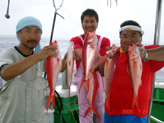 7/21 銭洲 コマセ禁止です! イカ&切身使用 加藤氏&健司船長&窪田氏 オナガ2本&4本&3本