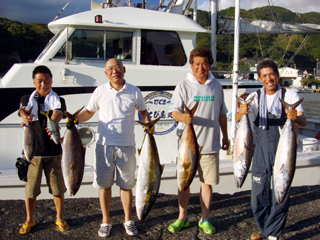 7/04 銭洲 坂東真悟氏 カンパチ5.75kg頭に4本! |