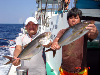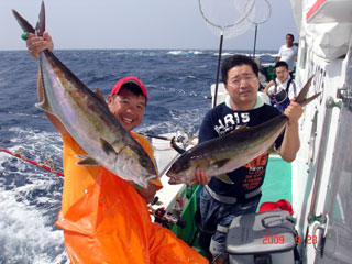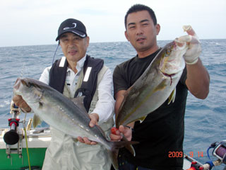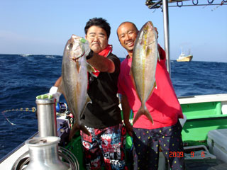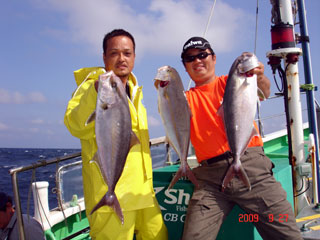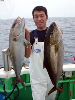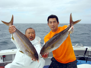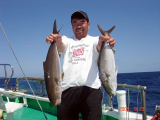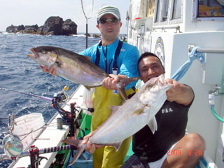 9/03 銭洲 国嶋氏&林田氏 カンパチ2.8kg&3.45kgチビムロ最高! |