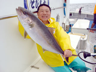 9/03 銭洲 川崎市 飯田好一氏 気合でカンパチ5.8kg!