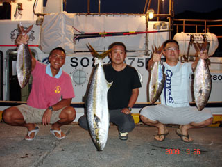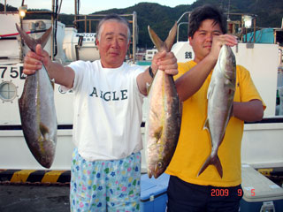 9/03 銭洲 永山氏&佐久間氏&相田氏 カンパチ2.1kg&2kg&6.1kg 朝から連続ヒットで3本ゲット!