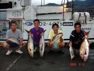9/11 銭洲 カンパチ3.7kg、ワラサ4.9kg、ハガツオ4.85kg、キメ4.45kg