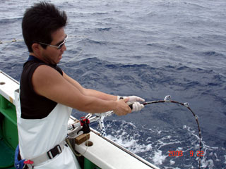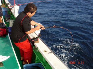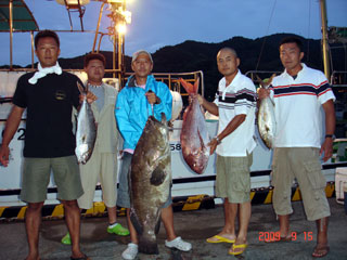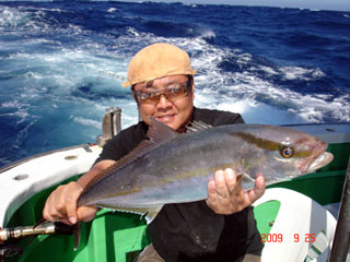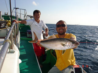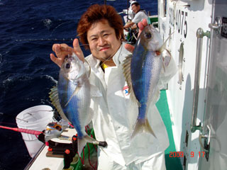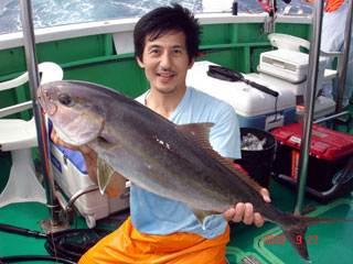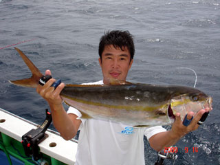 9/05 銭洲 ライバル対決(^^ゞ 最所氏vs伊東氏 カンパチ2本vs1本で最所氏の勝利(^O^)/
