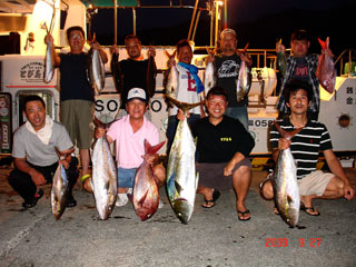 9/22 銭洲 カンパチ2.2-6.8kg8本、ヒラマサ12.3-13.15kg2本 ハタ4.9kg、ワラサ4.95-6.85kg5本、マダイ6.75kg ハガツオ5.8kg 爆釣!!