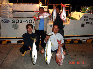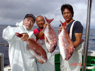 10/02 銭洲 中溝氏&国嶋副船長&相田氏 マダイ2.5kg&2.75kg&3.15kg |