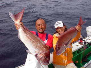 10/02 銭洲 国嶋副船長&飯田さん マダイ6.6kg&3.35kg