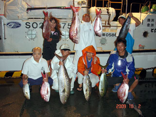10/02 銭洲 カンパチ1.2-10.5kg4本、ワラカン4.65kg マダイ2.5-6.6kg5枚、サワラ14.0kg 絶好調です!