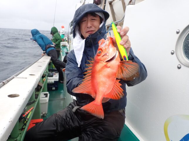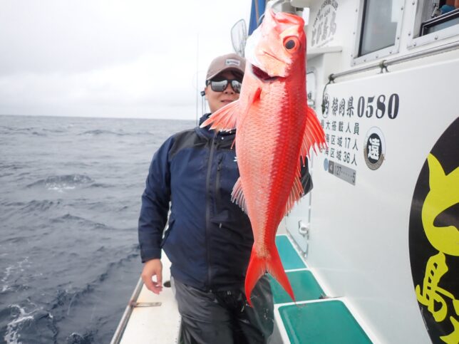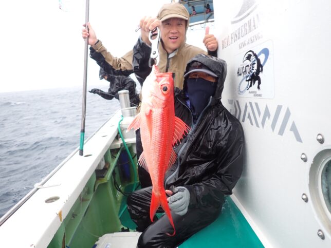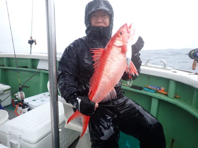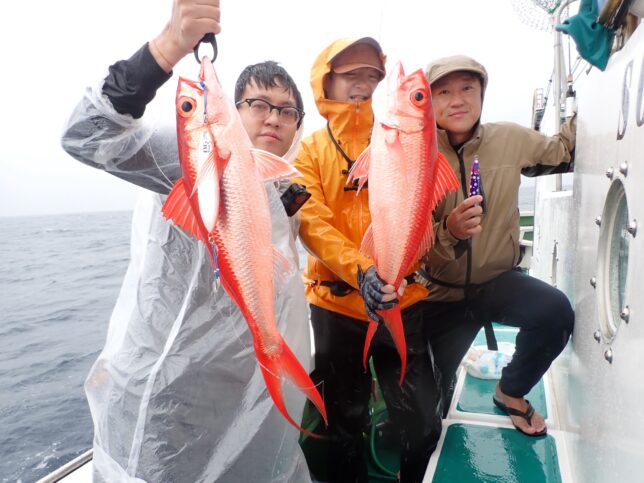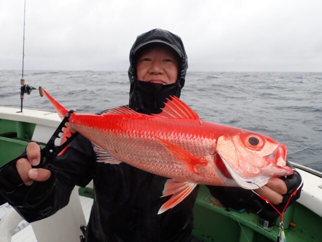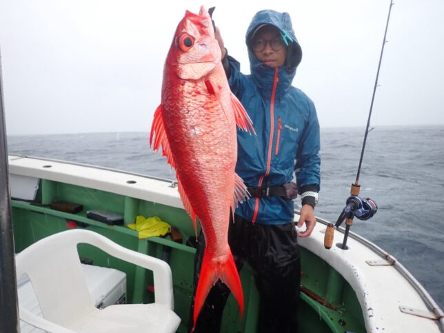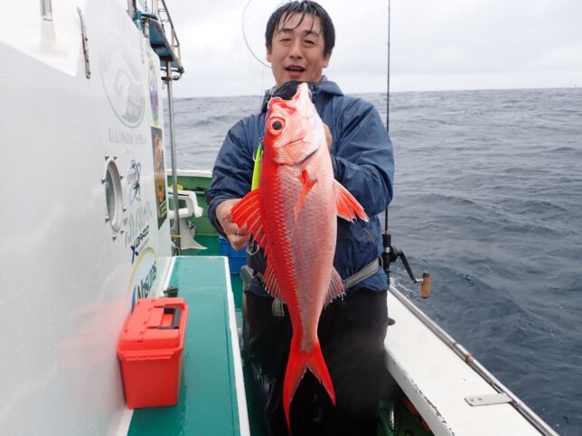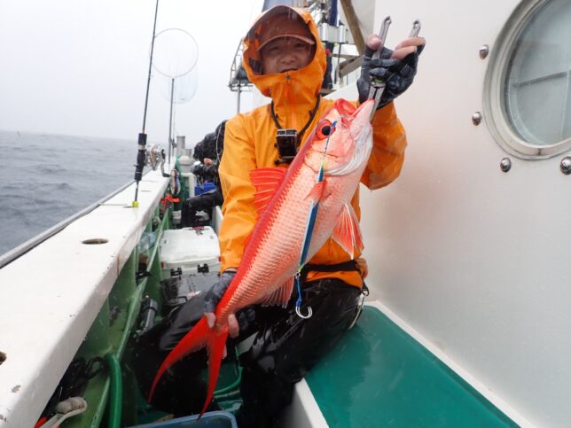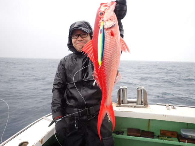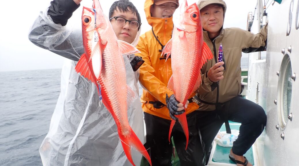 速報, 銭洲 銭洲ルアー中深海 2025年10月11日 忠文船長 銭洲【中深海ルアー】2025/10/11 オナガ3.7kgまで23尾ハガツヲ5.63kgハチビキ39尾八丈赤ムツ1.4kg カンパチ不発! デカパン狙いでしたが、中深海不発。浅場へ移動探索。反応あるもアタリナシ。。潮速くなり、次第にたるみましたが、次回ですね!カンパチは、次回!って事で。雨の中、お疲れ様でした。 関連