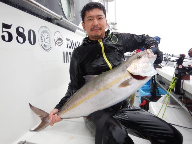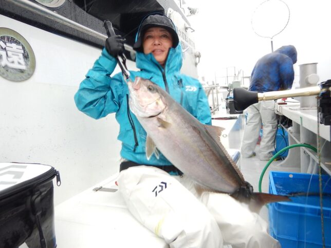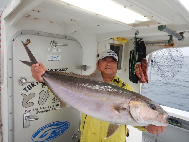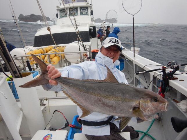 速報 銭洲仕立て 2025年10月11日 健司船長 銭洲仕立て船担当しました!朝のうちシマアジ狙いましたが、潮速く撃沈、切り替えてムロアジ釣って泳がせ!時合にポツポツ当たり有りました。カンパチ5.8~8.86kg4本!キハダ20kg級1本!大型ハリス切れ有り!他ツムブリ等も!次第に波高く、大雨で大変でした。皆さんお疲れ様でした。反応有るので今後に期待です! 関連
