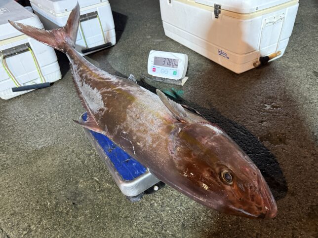 上がってきたのは、今期最大となる37.8kgのカンパチでした。