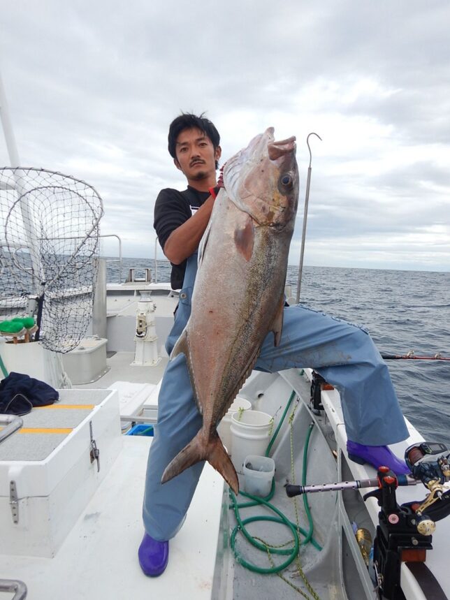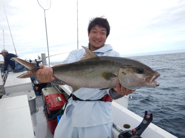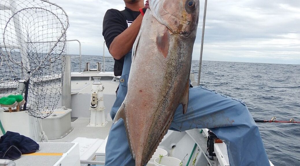 速報 銭洲乗り合い船 2025年10月20日 健司船長 銭洲乗り合い船本日1グループなので、リクエストで深場探索カンパチ20.3kg頭で2本!大型バラシ有り!オナガ2~3kg級1~3本!他ウメイロ、オオヒメ等も!皆さんお疲れ様でした。