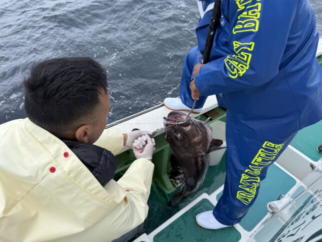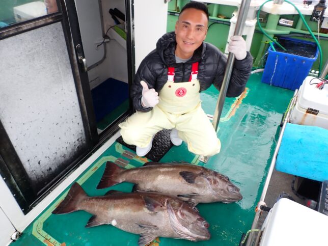 お知らせ, マル秘ポイント, 駿河湾 ヤリイカ泳がせ釣り 2025年11月6日 忠文船長 ヤリイカand泳がせ釣り2025/11/05 イシナギ20.3〜49.6kg3尾 メダイ1.93kg、カス鮫はリリース 銭洲、予報悪く湾内で泳がせ!餌のヤリイカを確保。たまたま?ノリ良く、あっという間に60杯超え。イシナギ、カス鮫、メダイに遊んでいただきました。 銭洲行けない時、アリですね。 銭洲は、日曜日、木曜日、土曜日、日曜日が凪予報です。募集します!