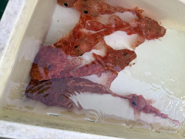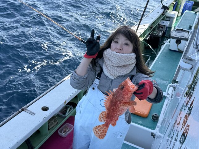 お知らせ, 石花海 鬼カサゴ 2026年2月1日 忠文船長 鬼カサゴ釣りへ出船!久しぶりの出船となりました。 西波残り、後半ベタ凪。潮はタルタルから速くなり、中盤からアタリが出始めた感じです。 ブグにハリを取られるシーンがありました。注意です! 鬼カサゴ1〜7尾、夢カサゴ0〜5尾、カンコ交じる。 水温13℃台、7?8年ぶりの低水温でポイント攻略に迷いました。 次回リベンジです! 有難う御座いました。 鬼は活魚で食せ!鬼カサゴ美味い!