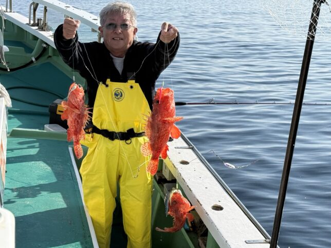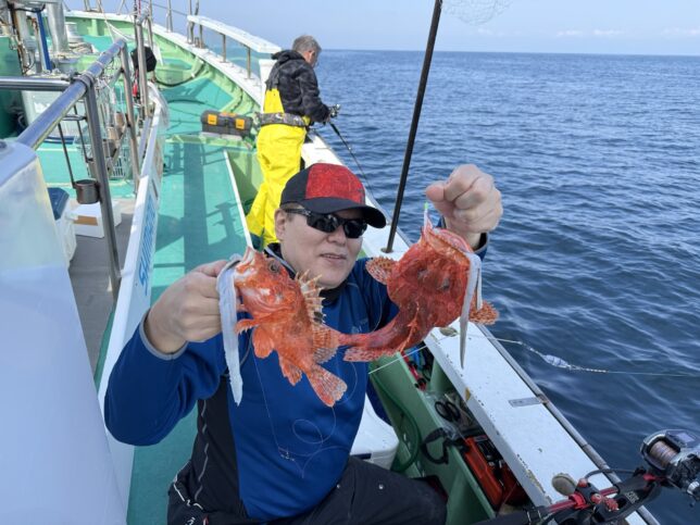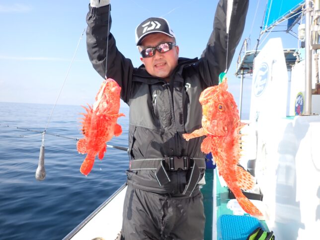 お知らせ, 駿河湾 鬼カサゴ狙い! 2026年2月28日 忠文船長 鬼カサゴ釣り! ベタ凪の海は気持ち良いですねーカンコ、アヤメカサゴ、マハタ、ドリーム交じりました。 鬼カサゴ2〜つ抜け! 鬼カサゴは活魚で食せ!エビのように甘く、プリップリの食感をお楽しみください。 明日からマグロ釣りです。 禁漁になるまで頑張ります!お問合せお待ちしています。 関連