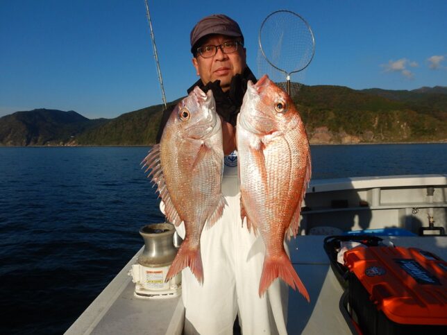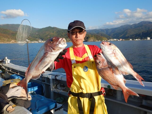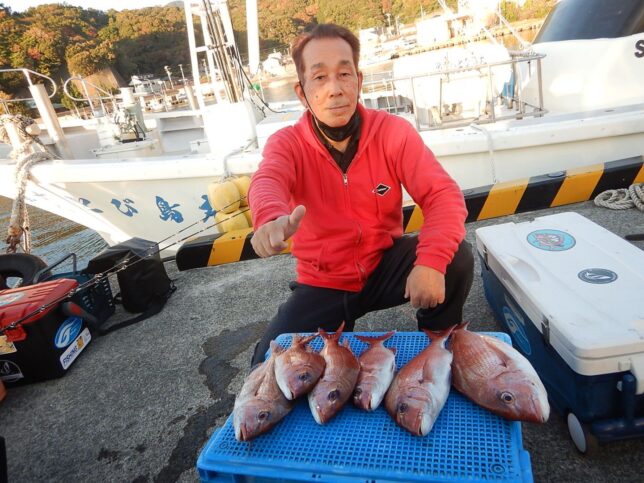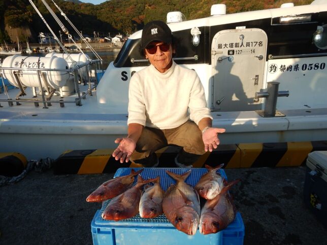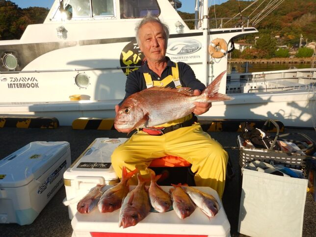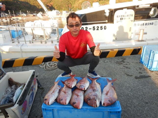 速報 マダイ釣り! 2025年10月26日 健司船長 土肥沖マダイ狙い!雨も少なくベタ凪でした。マダイ1.37kg頭で9~9計18枚!ハリス切れ有り!他イナダ、ハナダイ、オオモン、ソーダ等も!もういいよ~てことで少し早上がりでした。お疲れ様でした。反応良く狙い目ですよ~!