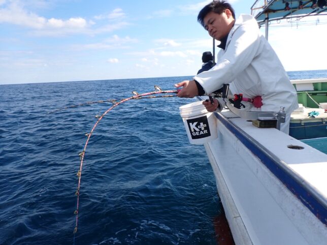 お知らせ, 銭洲 銭洲ルアー中深海仕立 2025年11月17日 忠文船長 銭洲 ルアー中深海仕立2025/11/17 帰り吹かれましたが、天気に恵まれ銭洲は凪でした。アカマチ、オナガ、ハマダイ、ツル。日本各地で呼び名は様々。ナイスサイズもあがり、激熱な流しも!カンパチは小型リリース沢山していただき有難う御座いました。なかには、リーダーぶっち切ってく個体も。モロコ?デカンパチ?根に張り付かれ、耐えてましたがラインブレイク。残念です。 次回、募集は20日木曜日です。有難う御座いました。