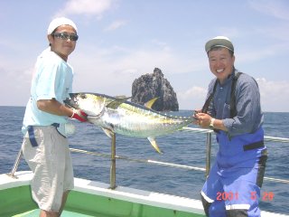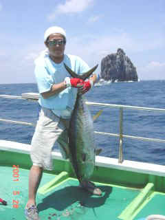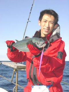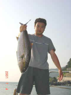 2001/5/20銭洲 チ-ム三吉 沼津市 加藤 勉 氏 カンパチ1.2kg 結果はともあれ頑張りました。